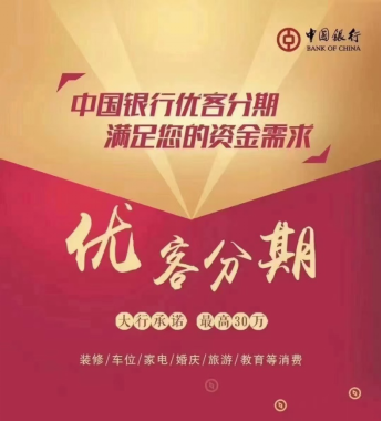 为满足优质客户装修、家电、婚庆、教育等资金需求,中国银行推出优客分期业务。全市行政事业单位、公积金缴存客户可申请办理该信用贷款业务,最高可贷款30万元,年费率低至3%。公务员、教师、医护人员还有专享费率优惠,详询中国银行各网点。